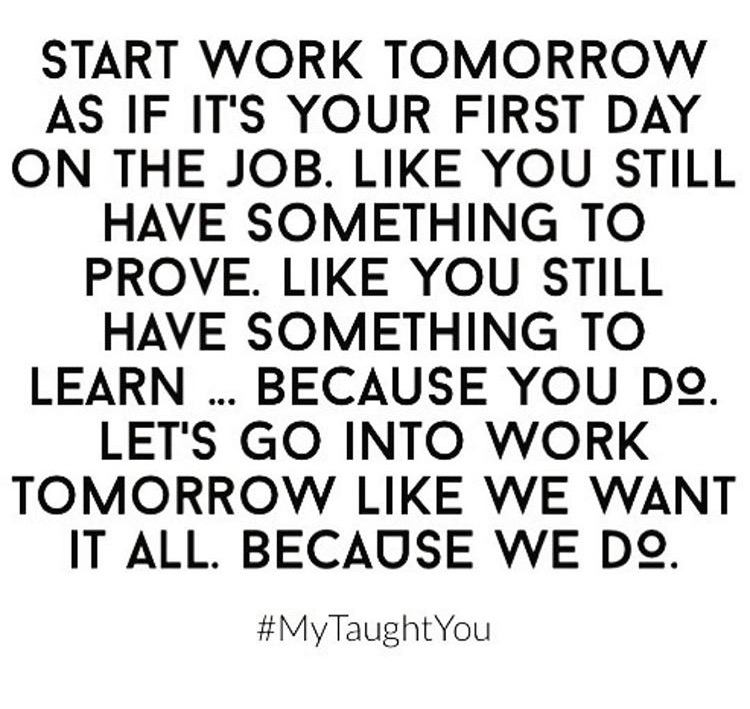 Guess who’s hype about the 1st “official” work day of the year?! Whether it’s your first year or 10th, we can always begin anew. The same hunger, humbleness & curiosity that we had back then will carry us through the year. Be curious, ask questions, look for ways to win. || “It’s humbling to start fresh. It takes a lot of courage. But it can be reinvigorating. You just have to put your ego on a shelf & tell it to be quiet.”― Jennifer Ritchie Payette #mytaughtyou Inspired by Myleik.